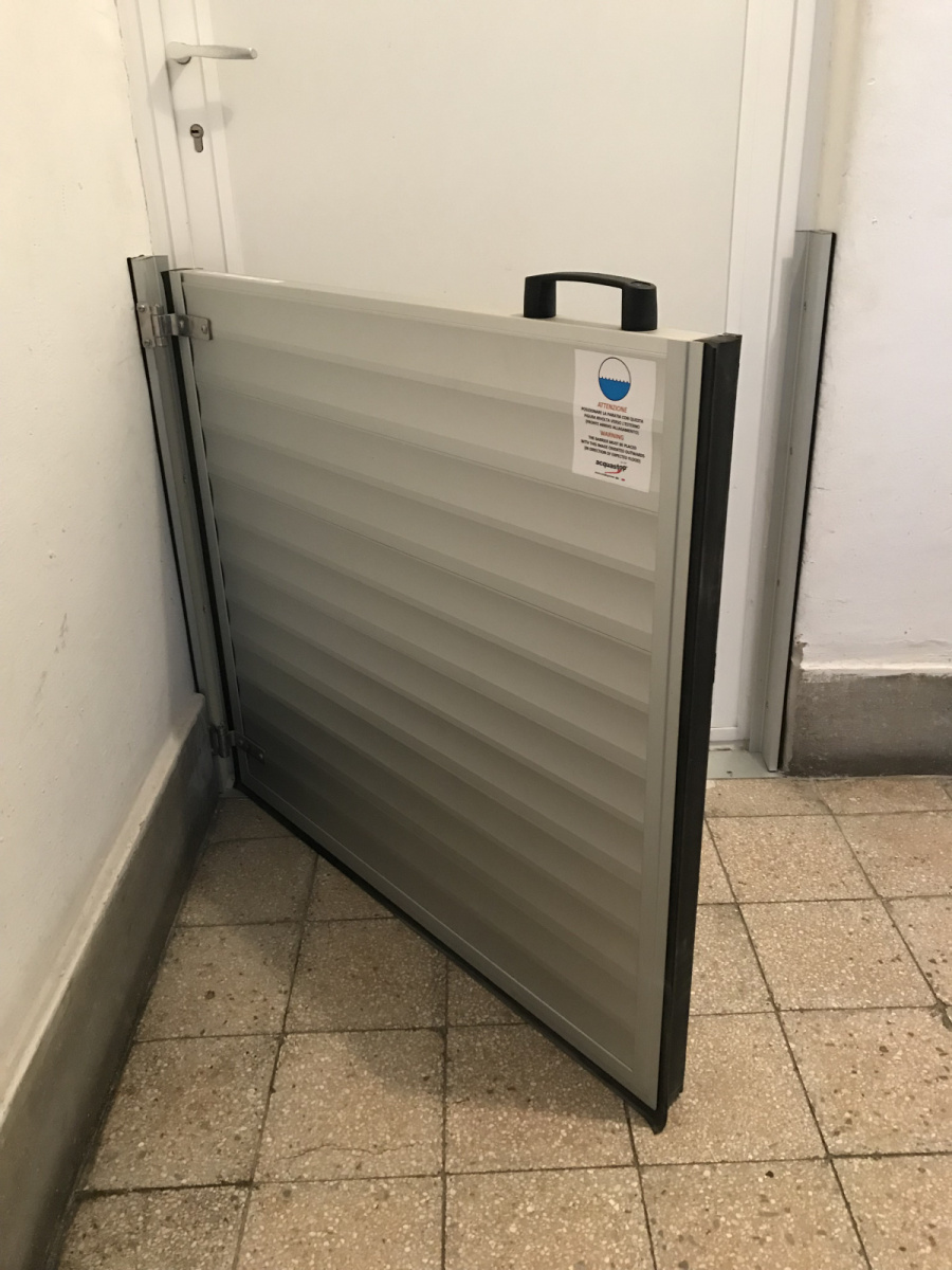 Árvízvédelmi kapu és ajtó típus, melyet a védekezés idején kell csak bezárni. Ideális és kényelmes megoldás, nem utolsó sorban azok számára is, akiknek a mobilgát elhelyezése nehézségeket okozhat, vagy olyan helyzetekben, amikor a helyiségek állandó védelme szükséges. A vízzáró ajtók és árvízvédelmi kapuk, speciális alumínium betételemekkel készülnek, és a kerethez erős csuklópántokkal csatlakoznak, amelyek lehetővé teszik a 180 °-ban történő nyithatóságot is.